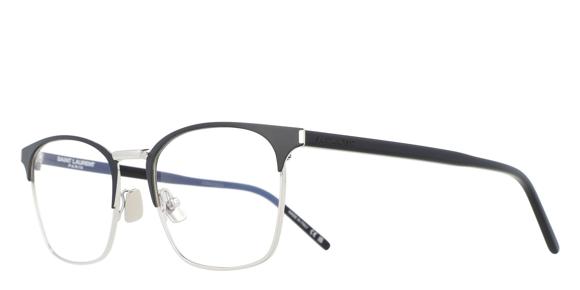 For a sleek and sophisticated look, the Saint Laurent SL 224 Optical frames feature a rectangular shape with a durable metal construction. These full-rim glasses are perfect for those seeking a minimalist yet elegant aesthetic. The iconic Saint Laurent logo on the temples adds a refined finishing touch.