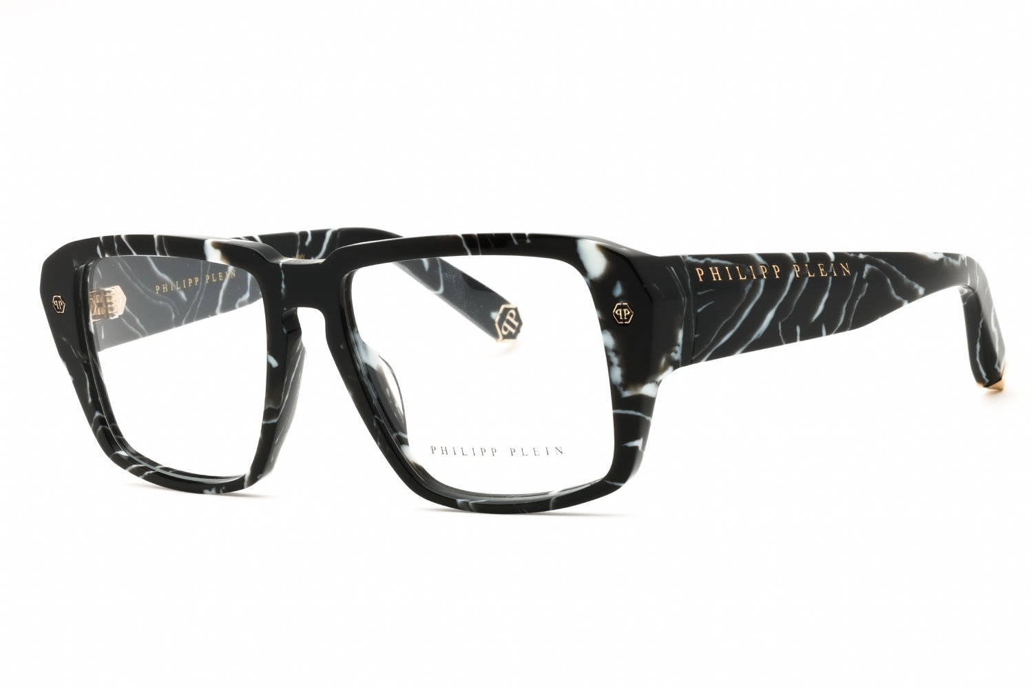 Philipp Plein VPP081 in Marbled Ivory. This model features an eye catching shape to complement your facial features.The frame is made from quality materials, balancing weight and strength for your ultimate comfort.