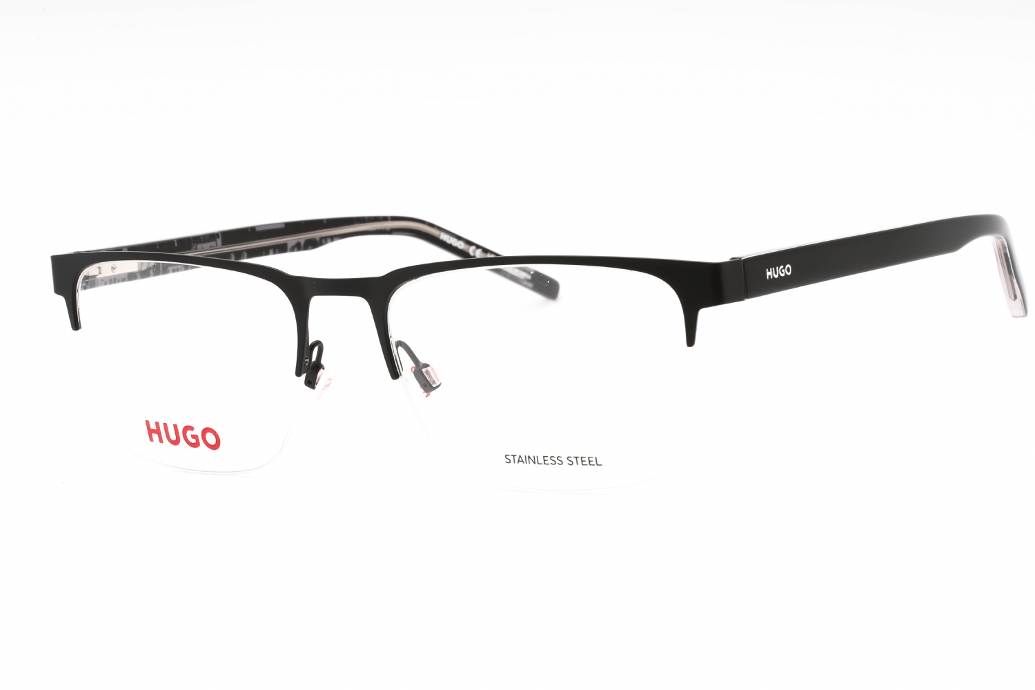 HUGO HG 1076 in Matte Black. This model features an eye catching shape to complement your facial features.The frame is made from quality materials, balancing weight and strength for your ultimate comfort.