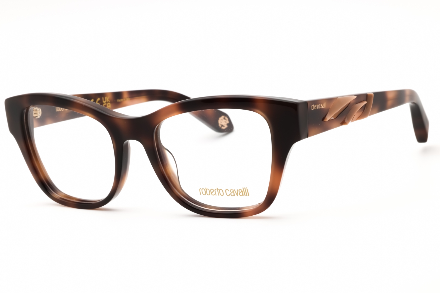 Roberto Cavalli VRC025M in Dark Havana. This model features an eye catching shape to complement your facial features.The frame is made from quality materials, balancing weight and strength for your ultimate comfort.