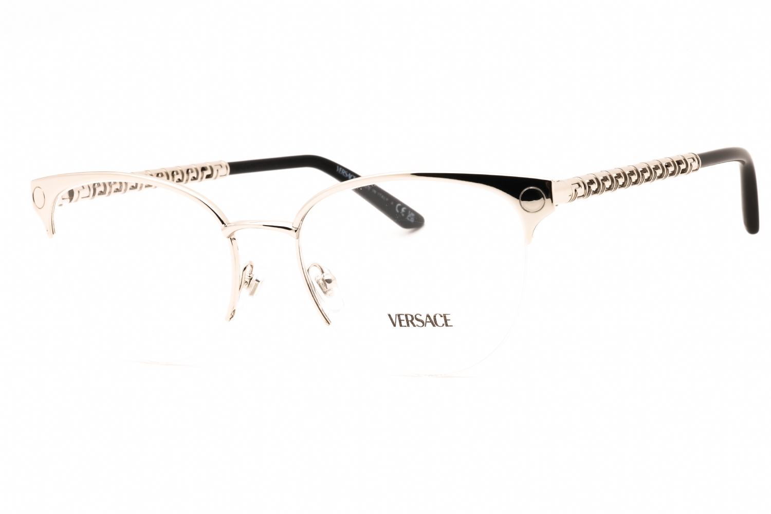 Versace 0VE1297 in Silver. This model features an eye catching shape to complement your facial features.The frame is made from quality materials, balancing weight and strength for your ultimate comfort.