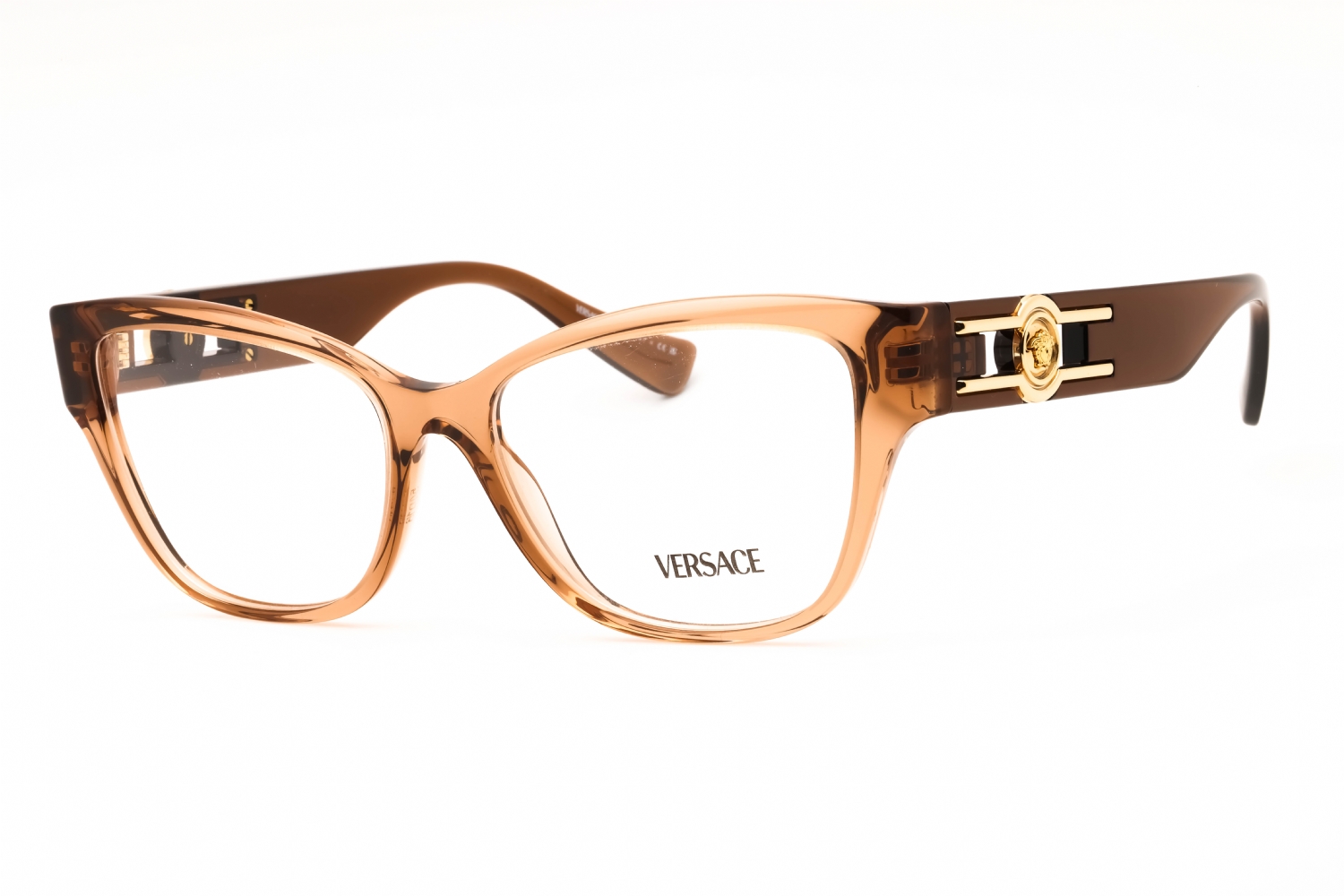 Versace 0VE3347 in Brown Transparent. This model features an eye catching shape to complement your facial features.The frame is made from quality materials, balancing weight and strength for your ultimate comfort.