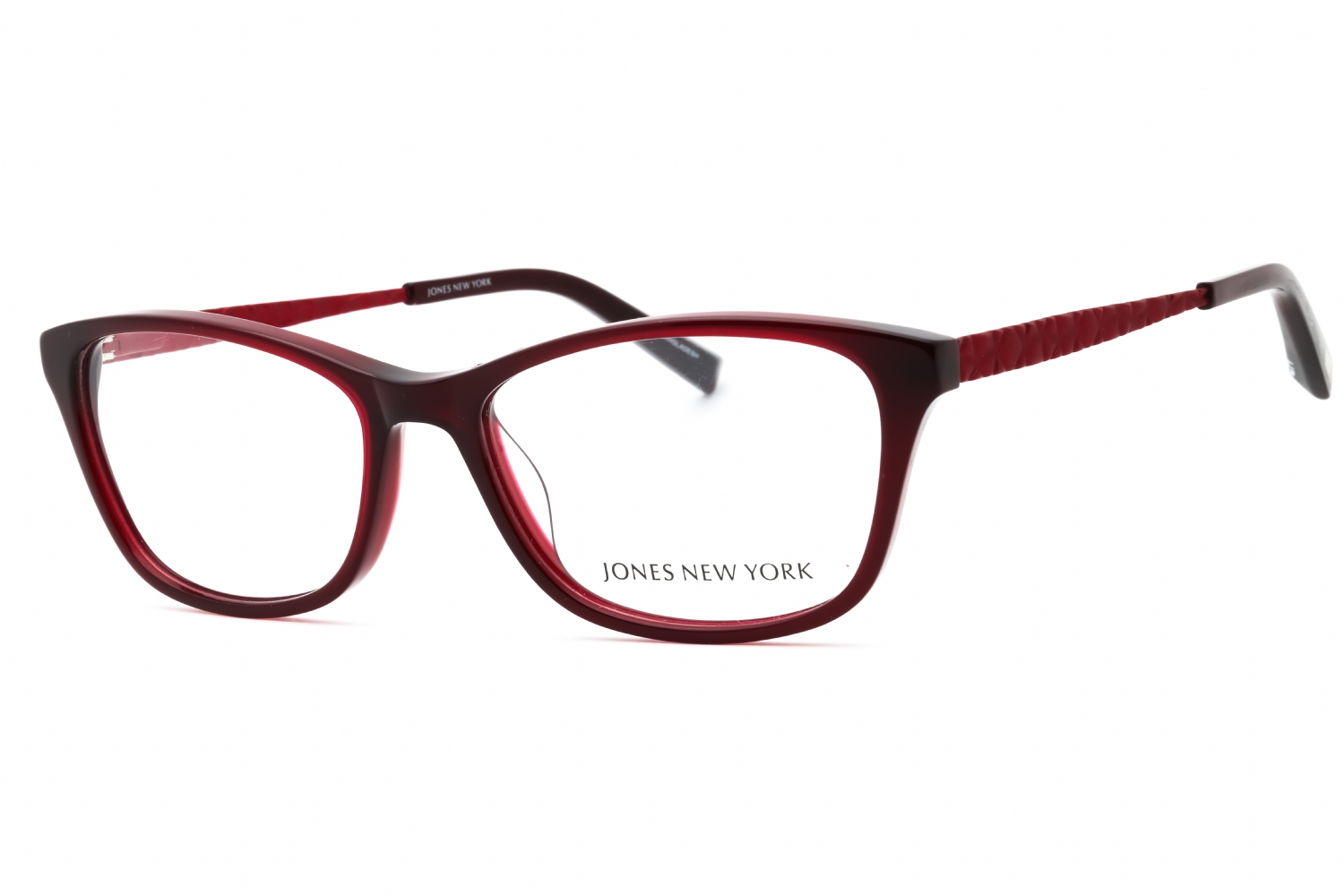 Jones New York J762 in Burgundy. This model features an eye catching shape to complement your facial features.The frame is made from quality materials, balancing weight and strength for your ultimate comfort.
