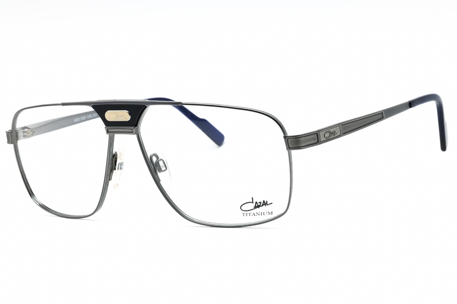 Cazal 7087 in Gunmetal-Night Blue. This model features an eye catching shape to complement your facial features.The frame is made from quality materials, balancing weight and strength for your ultimate comfort.