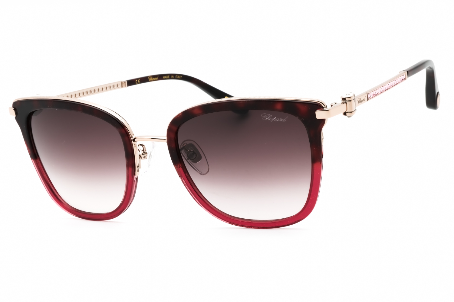 Chopard SCH286S in Red Havana Glittery. This model features an eye catching shape to complement your facial features.The frame is made from quality materials, balancing weight and strength for your ultimate comfort.