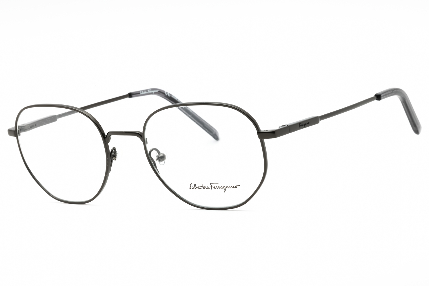 Salvatore Ferragamo SF2215 in Shiny Dark Gunmetal. This model features an eye catching shape to complement your facial features.The frame is made from quality materials, balancing weight and strength for your ultimate comfort.