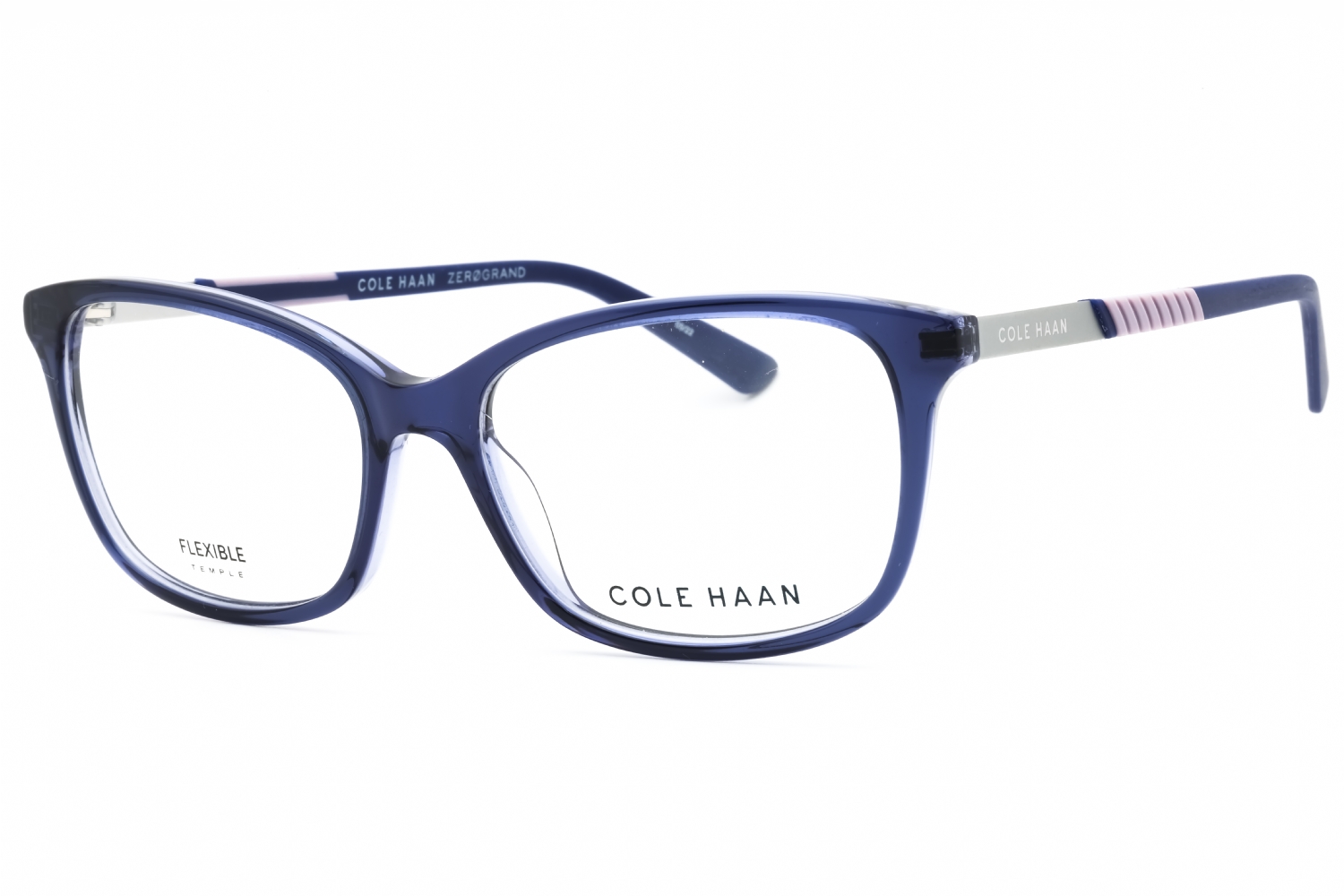 Cole Haan CH5052 in Teal Crystal. This model features an eye catching shape to complement your facial features.The frame is made from quality materials, balancing weight and strength for your ultimate comfort.