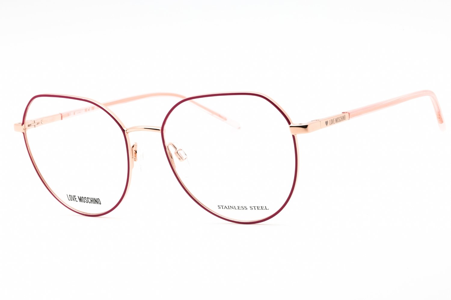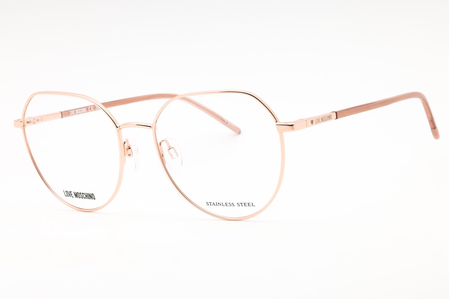 Moschino MOL560 in Pink Gold. This model features an eye catching shape to complement your facial features.The frame is made from quality materials, balancing weight and strength for your ultimate comfort.