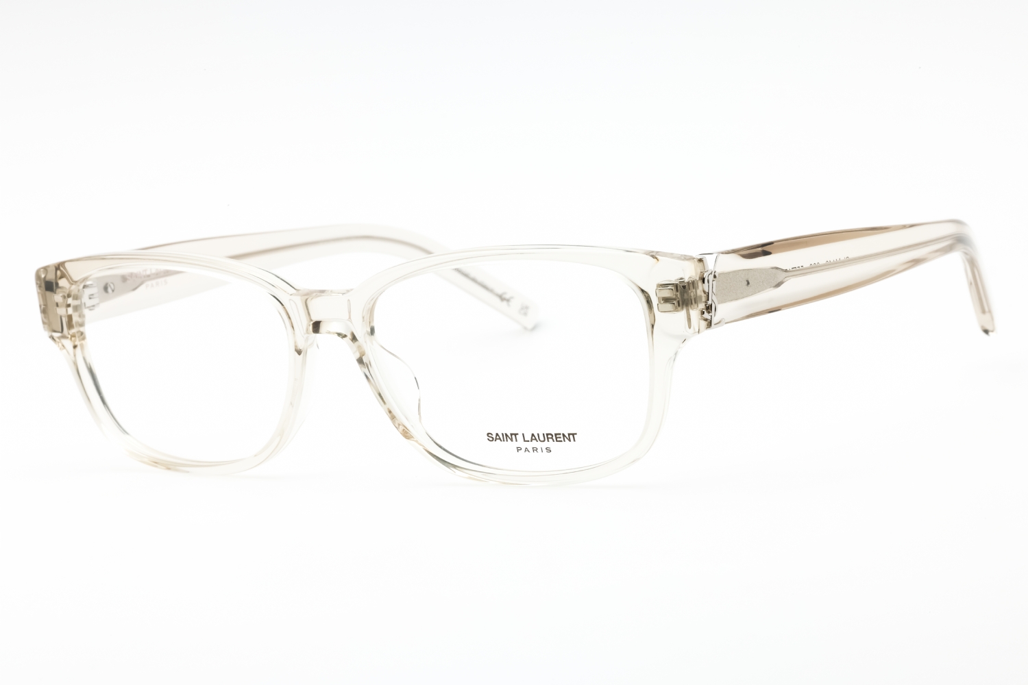 Saint Laurent SL M149 in Transparent Beige Brown. This model features an eye catching shape to complement your facial features.The frame is made from quality materials, balancing weight and strength for your ultimate comfort.