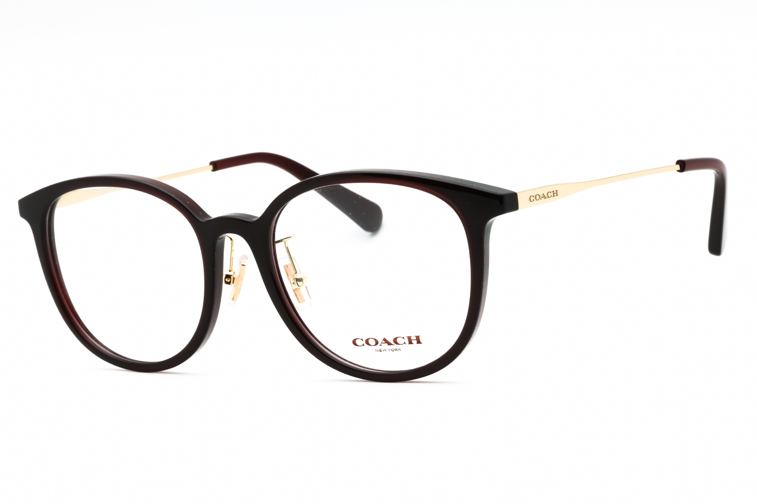 COACH 0HC6160D in Transparent Dark Burgundy. This model features an eye catching shape to complement your facial features.The frame is made from quality materials, balancing weight and strength for your ultimate comfort.