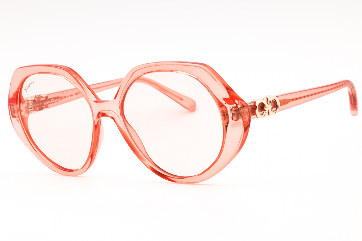 Salvatore Ferragamo SF1084S in Transparent Coral. This model features an eye catching shape to complement your facial features.The frame is made from quality materials, balancing weight and strength for your ultimate comfort.