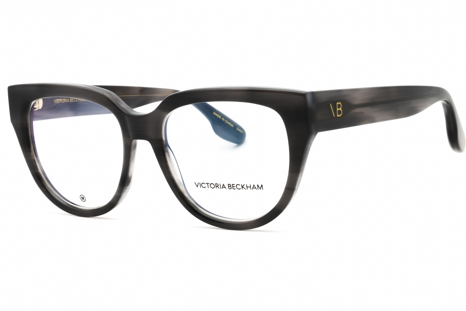 Victoria Beckham VB2674 in Striped Grey. This model features an eye catching shape to complement your facial features.The frame is made from quality materials, balancing weight and strength for your ultimate comfort.