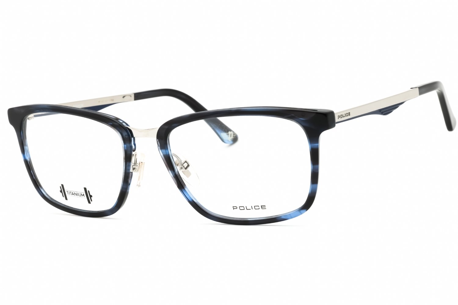 Police VPL684 in Striped Blue. This model features an eye catching shape to complement your facial features.The frame is made from quality materials, balancing weight and strength for your ultimate comfort.