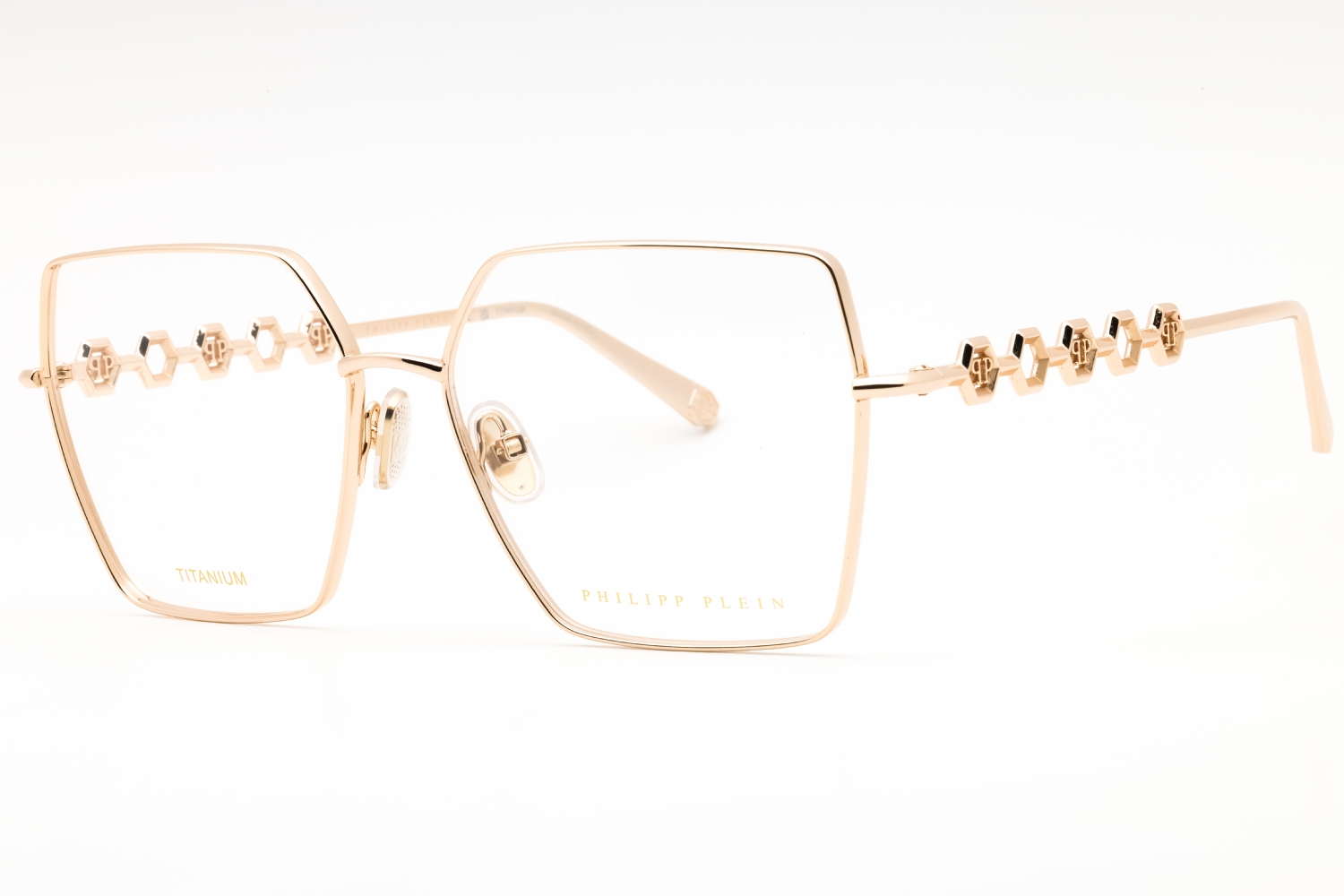 Philipp Plein VPP071M in Shiny Rose Gold. This model features an eye catching shape to complement your facial features.The frame is made from quality materials, balancing weight and strength for your ultimate comfort.