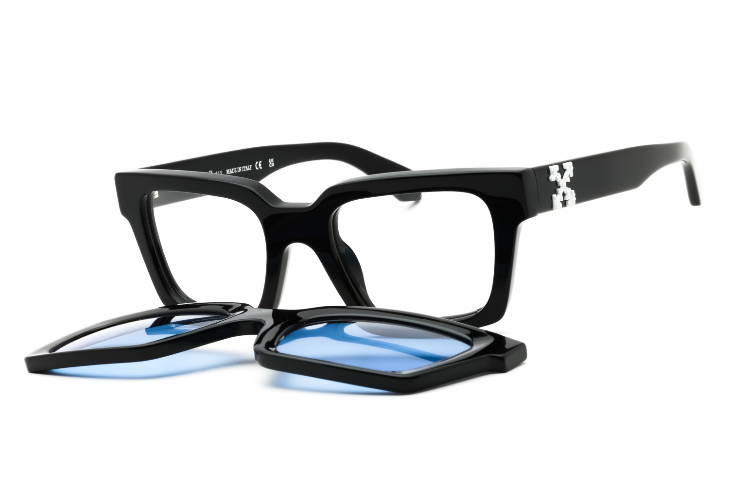 Off White CLIP ON in Black. This model features an eye catching shape to complement your facial features.The frame is made from quality materials, balancing weight and strength for your ultimate comfort.