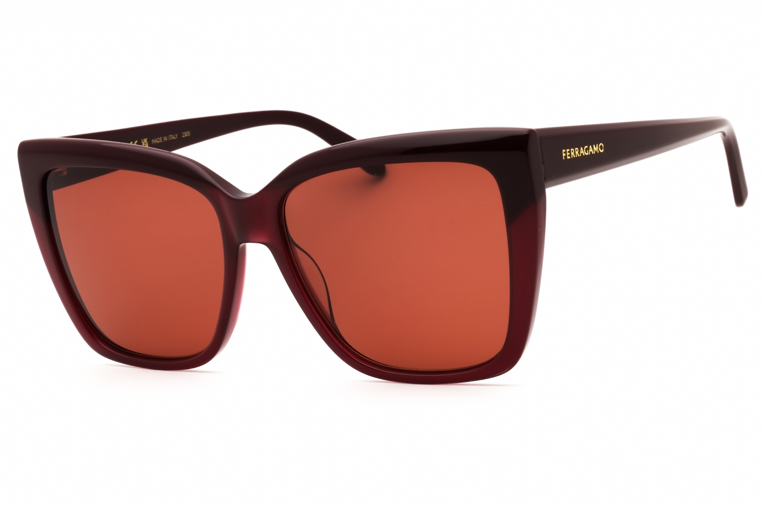 Salvatore Ferragamo SF1102S in Wine. This model features an eye catching shape to complement your facial features.The frame is made from quality materials, balancing weight and strength for your ultimate comfort.