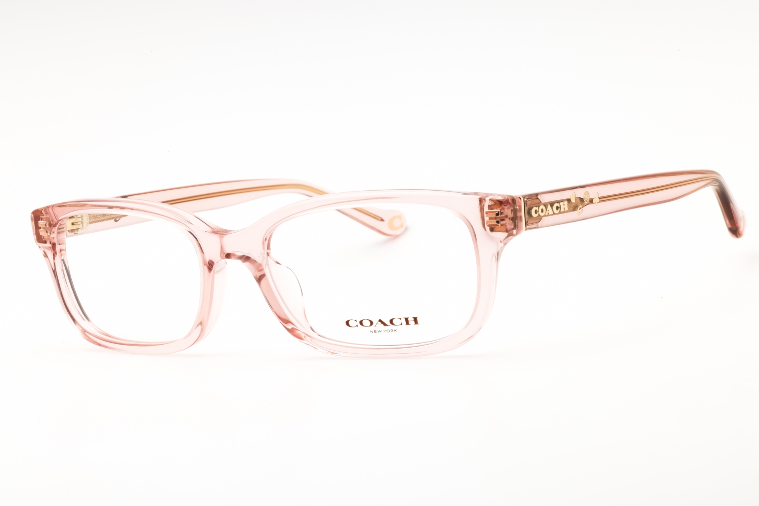 COACH 0HC6233U in Transparent Dusty Rose. This model features an eye catching shape to complement your facial features.The frame is made from quality materials, balancing weight and strength for your ultimate comfort.