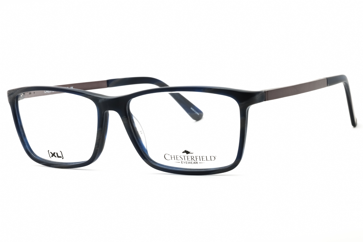 Chesterfield 54XL in Blue Horn. This model features an eye catching shape to complement your facial features.The frame is made from quality materials, balancing weight and strength for your ultimate comfort.