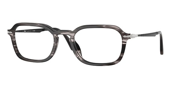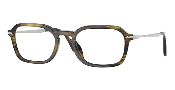 Persol PO3381V in Striped Black And Olive. This model features an eye catching shape to complement your facial features.The frame is made from quality materials, balancing weight and strength for your ultimate comfort.