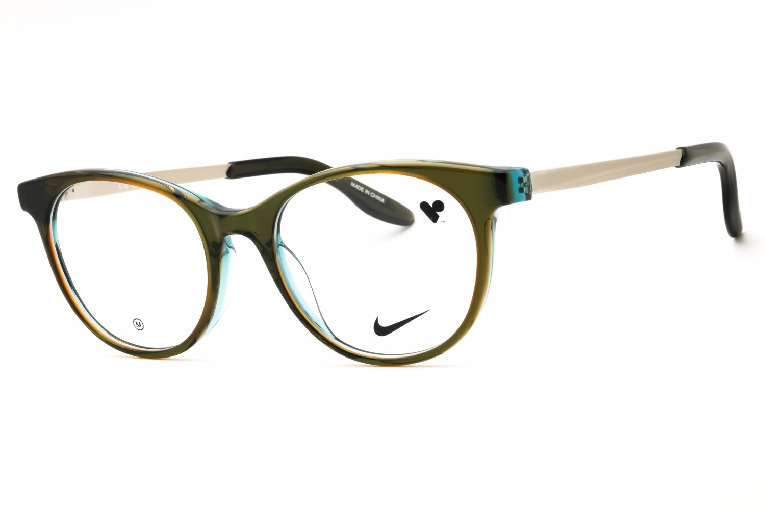 NIKE 7173 in Olive/Blue Laminate. This model features an eye catching shape to complement your facial features.The frame is made from quality materials, balancing weight and strength for your ultimate comfort.