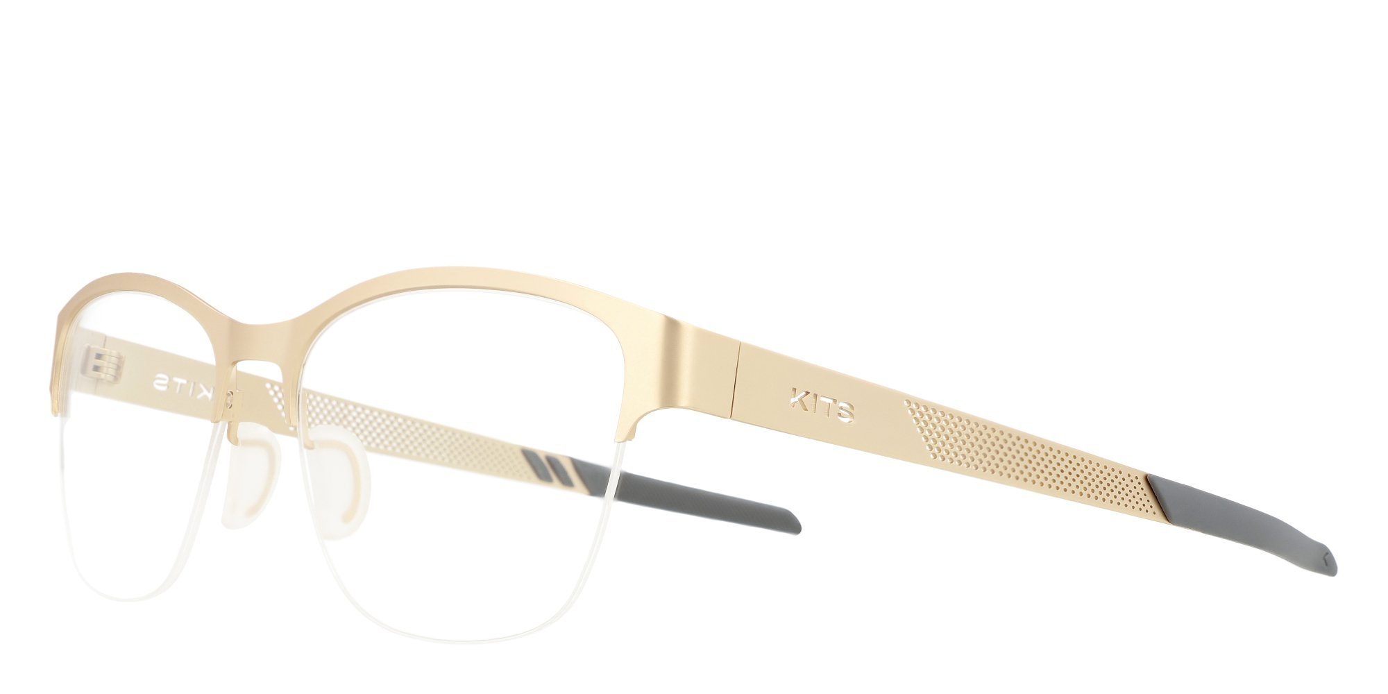 - Perforated temples with KITS logo and detailing
