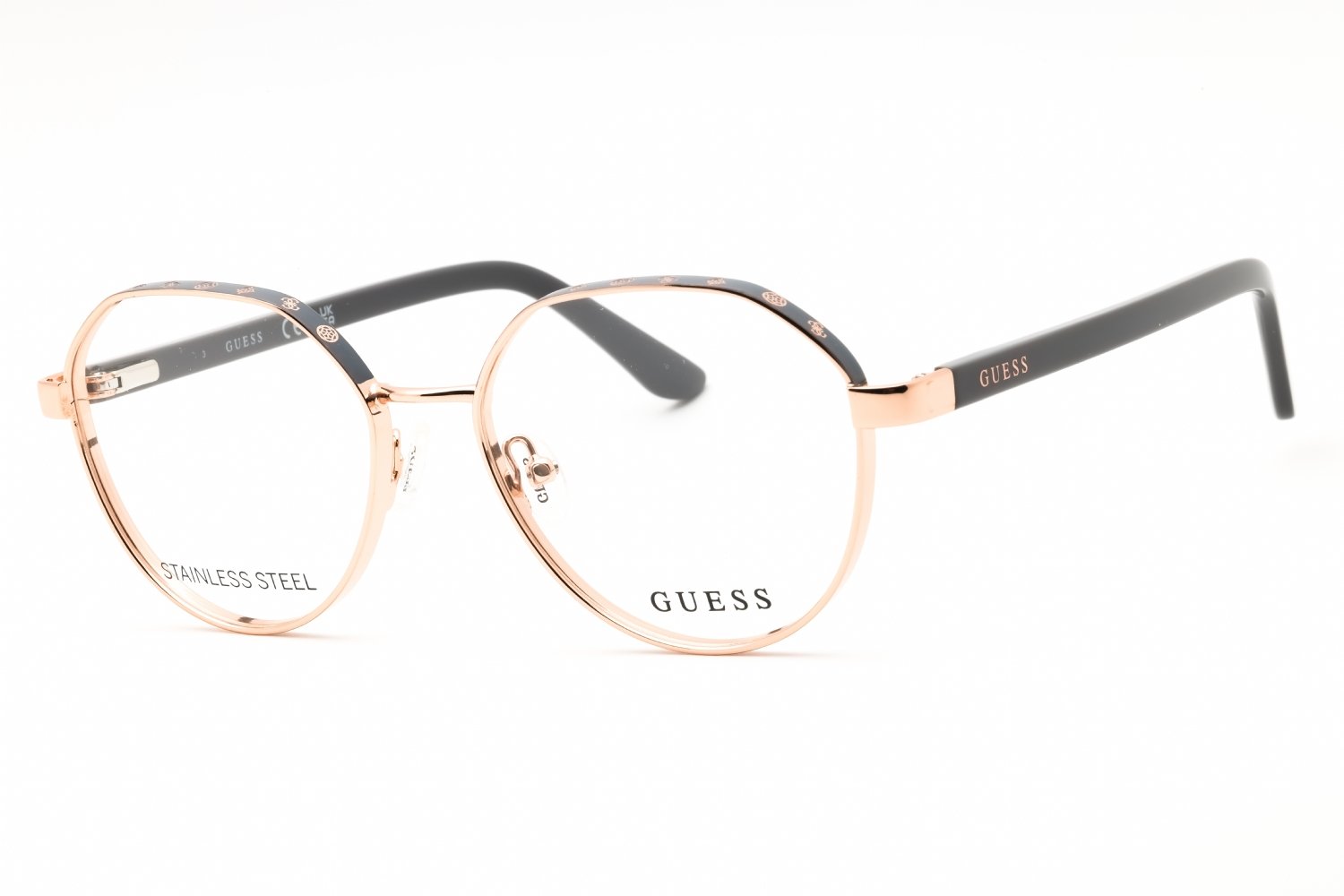 Guess GU50124 in Shiny Rose Gold. This model features an eye catching shape to complement your facial features.The frame is made from quality materials, balancing weight and strength for your ultimate comfort.