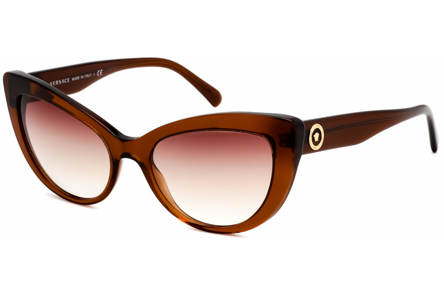 Versace VE4388 in Transparent Brown / Orange Gradient. This model features an eye catching shape to complement your facial features.The frame is made from quality materials, balancing weight and strength for your ultimate comfort.