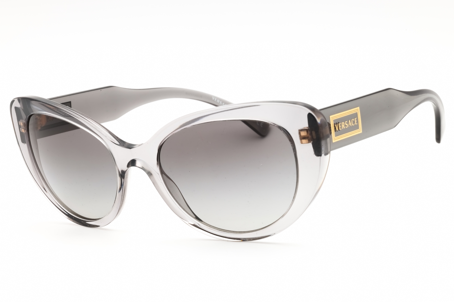 Versace VE4378 in Transparent Grey. This model features an eye catching shape to complement your facial features.The frame is made from quality materials, balancing weight and strength for your ultimate comfort.