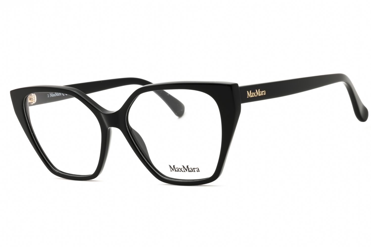 Max Mara MM5085 in Shiny Black. This model features an eye catching shape to complement your facial features.The frame is made from quality materials, balancing weight and strength for your ultimate comfort.