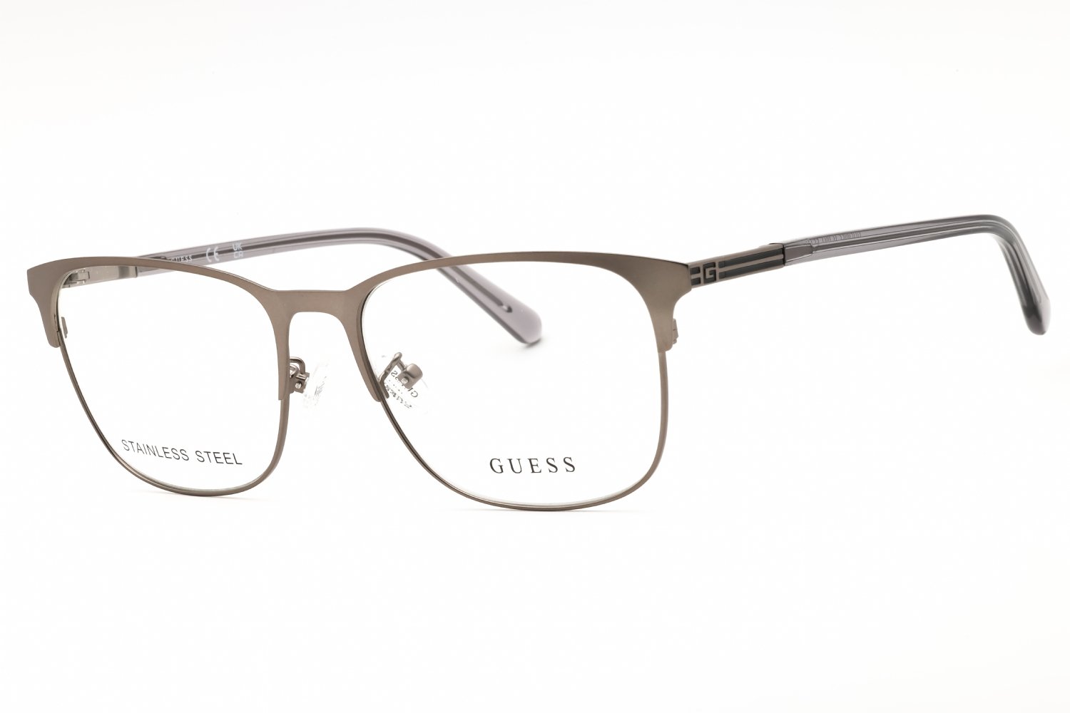 Guess GU50055-D in Matte Dark Nickeltin. This model features an eye catching shape to complement your facial features.The frame is made from quality materials, balancing weight and strength for your ultimate comfort.
