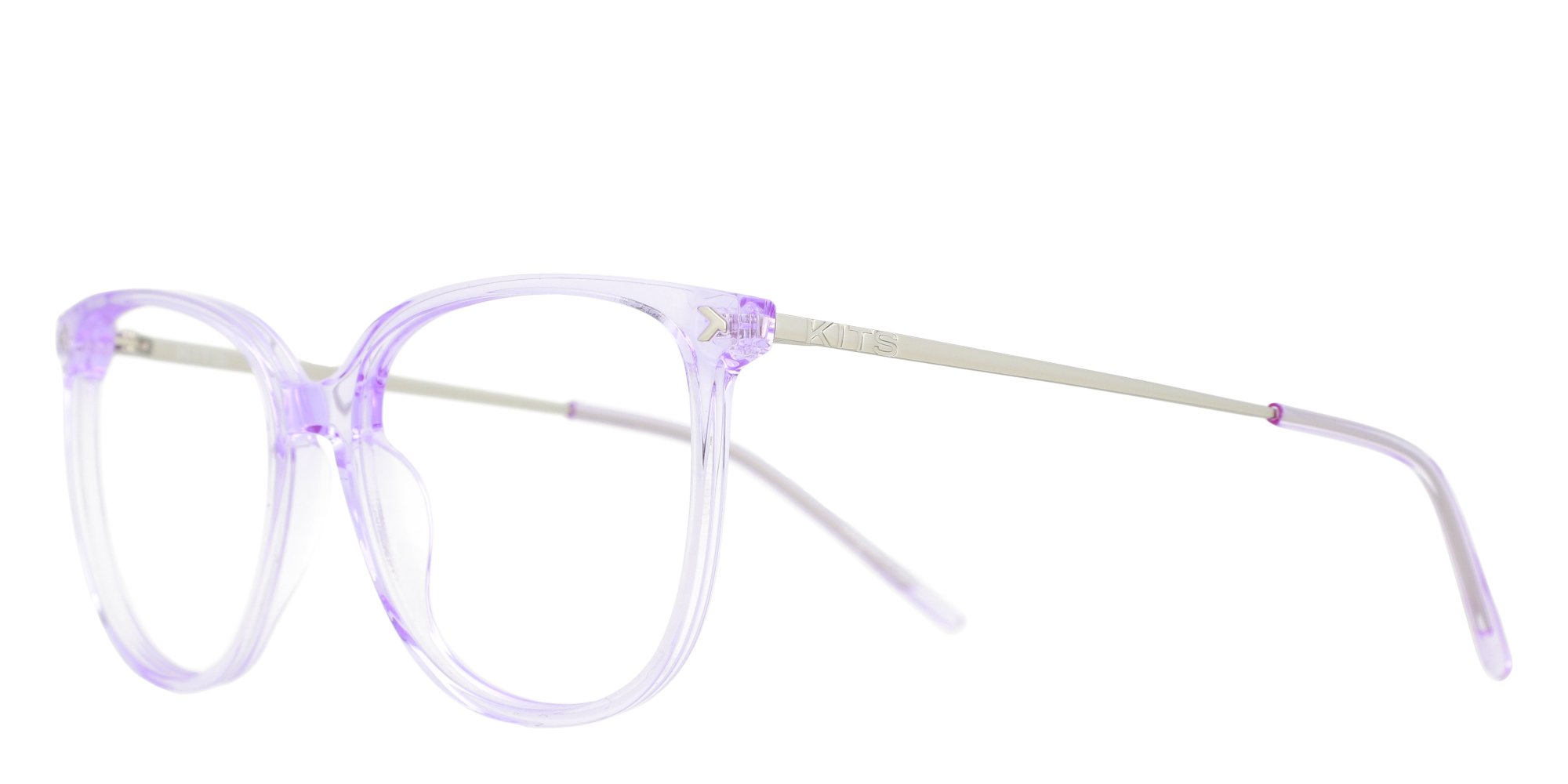 Cateye frame with lightweight acetate front paired with slim stainless steel temples