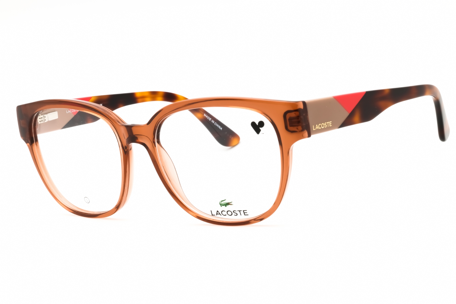 Lacoste L2953 in Transparent Caramel. This model features an eye catching shape to complement your facial features.The frame is made from quality materials, balancing weight and strength for your ultimate comfort.