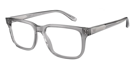 Emporio Armani EA3218 in Shiny Transparent Grey. This model features an eye catching shape to complement your facial features.The frame is made from quality materials, balancing weight and strength for your ultimate comfort.
