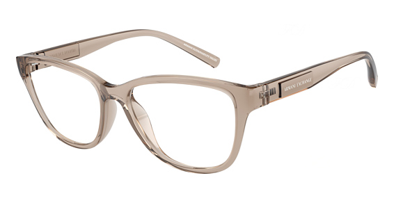 Armani Exchange AX3111U in Shiny Transparent Peach. This model features an eye catching shape to complement your facial features.The frame is made from quality materials, balancing weight and strength for your ultimate comfort.