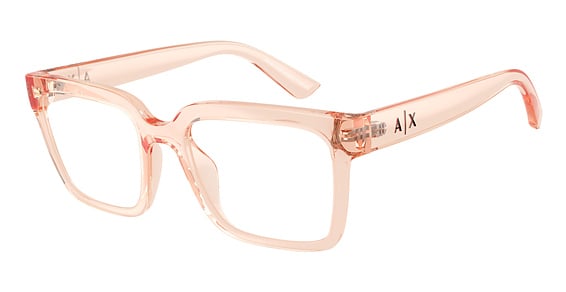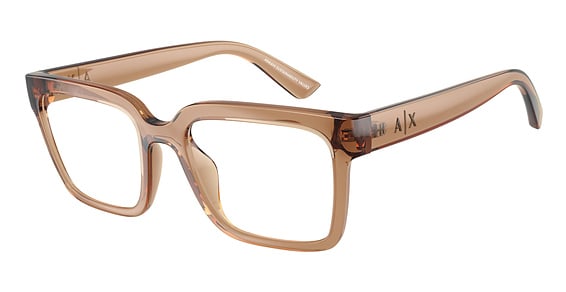 Armani Exchange AX3133U in Shiny Transparent Brown. This model features an eye catching shape to complement your facial features.The frame is made from quality materials, balancing weight and strength for your ultimate comfort.