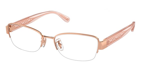COACH HC5168 in Shiny Rose Gold. This model features an eye catching shape to complement your facial features.The frame is made from quality materials, balancing weight and strength for your ultimate comfort.