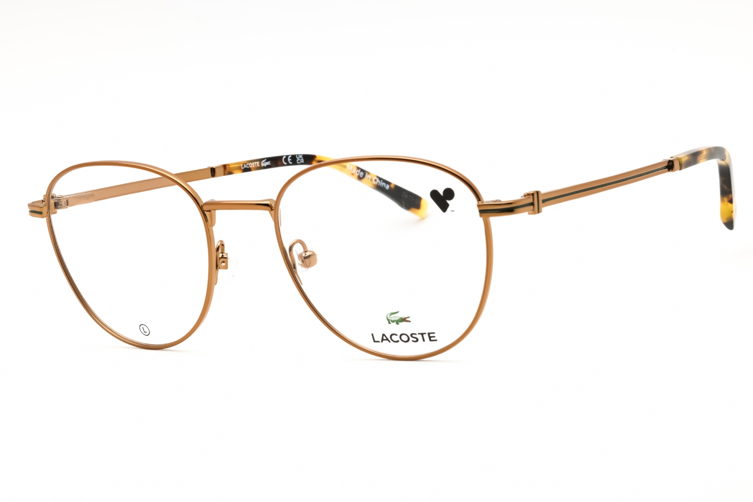 Lacoste L2312 in Amber Gold. This model features an eye catching shape to complement your facial features.The frame is made from quality materials, balancing weight and strength for your ultimate comfort.