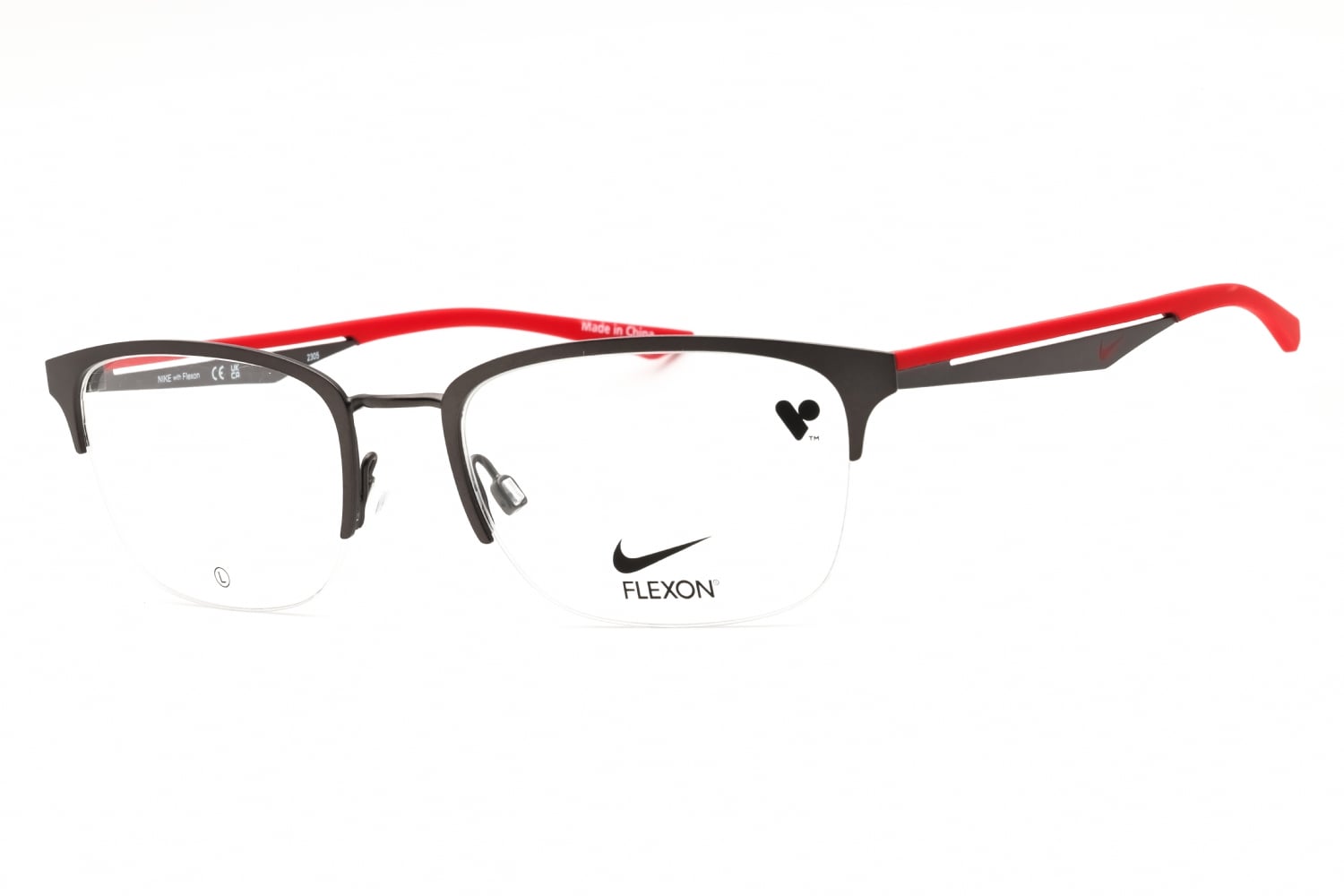NIKE 4316 in Satin Gunmetal/university R/satin Gunmetal. This model features an eye catching shape to complement your facial features.The frame is made from quality materials, balancing weight and strength for your ultimate comfort.