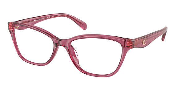 COACH HC6243U in Transparent Burgundy. This model features an eye catching shape to complement your facial features.The frame is made from quality materials, balancing weight and strength for your ultimate comfort.