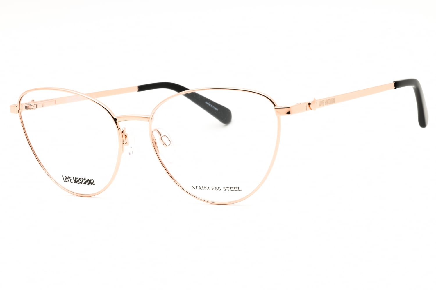Moschino MOL587 in Gold Copper. This model features an eye catching shape to complement your facial features.The frame is made from quality materials, balancing weight and strength for your ultimate comfort.