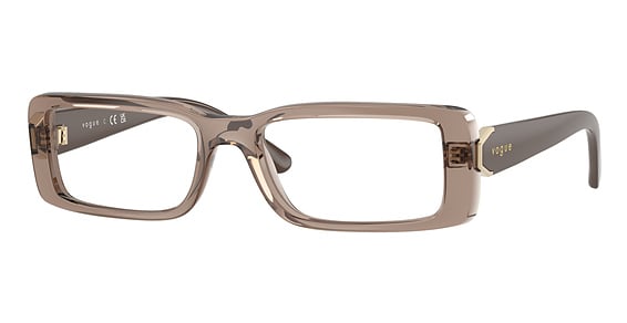 Vogue VO5677 in Transparent Brown. This model features an eye catching shape to complement your facial features.The frame is made from quality materials, balancing weight and strength for your ultimate comfort.