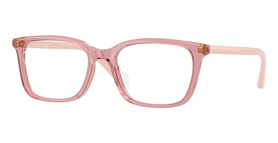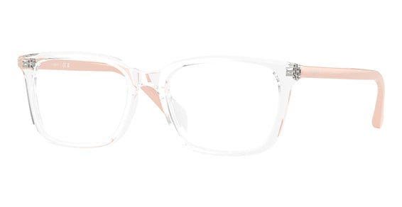 Vogue VO5643D in Transparent Pink. This model features an eye catching shape to complement your facial features.The frame is made from quality materials, balancing weight and strength for your ultimate comfort.
