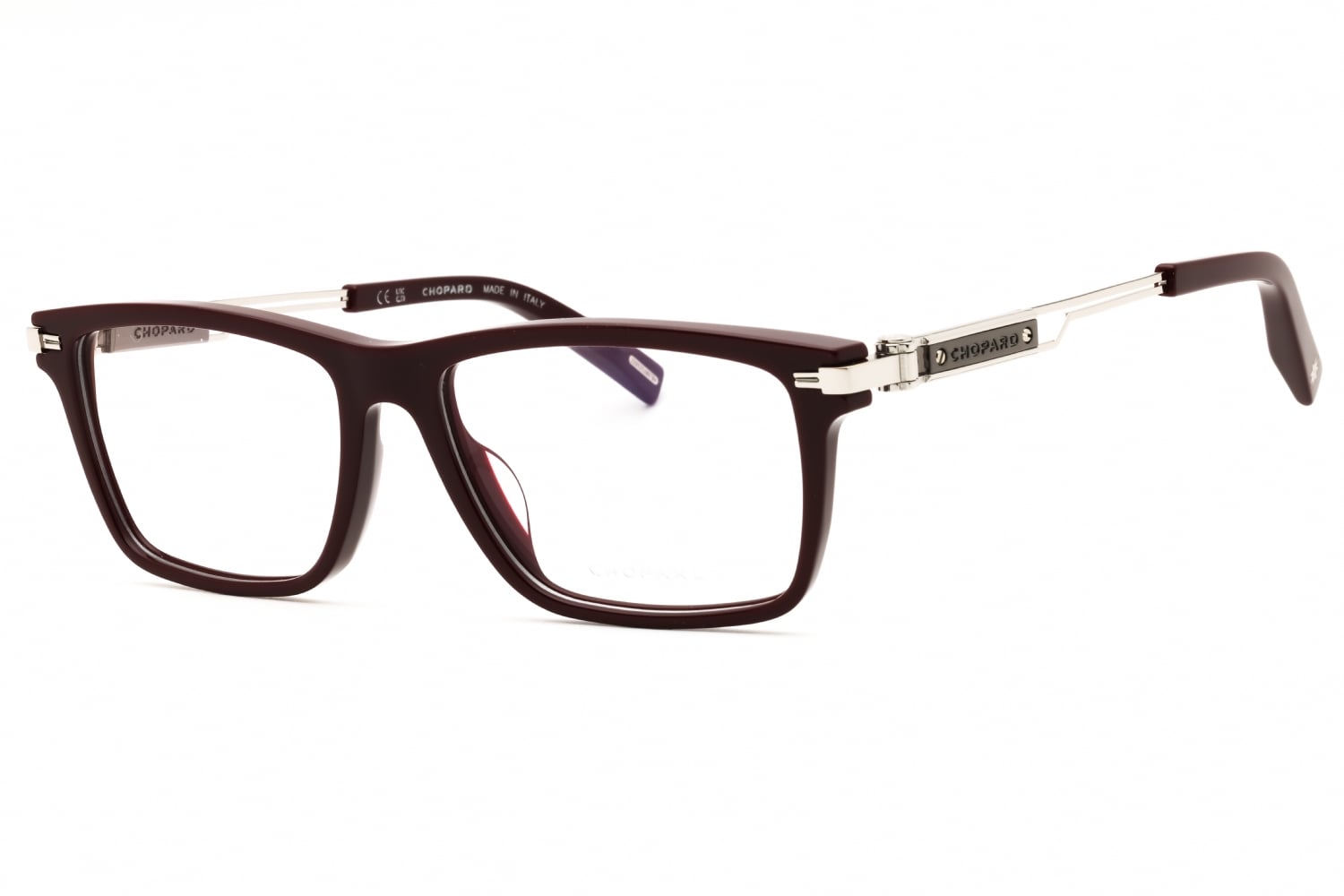 Chopard VCH357 in Shiny Burgundy. This model features an eye catching shape to complement your facial features.The frame is made from quality materials, balancing weight and strength for your ultimate comfort.