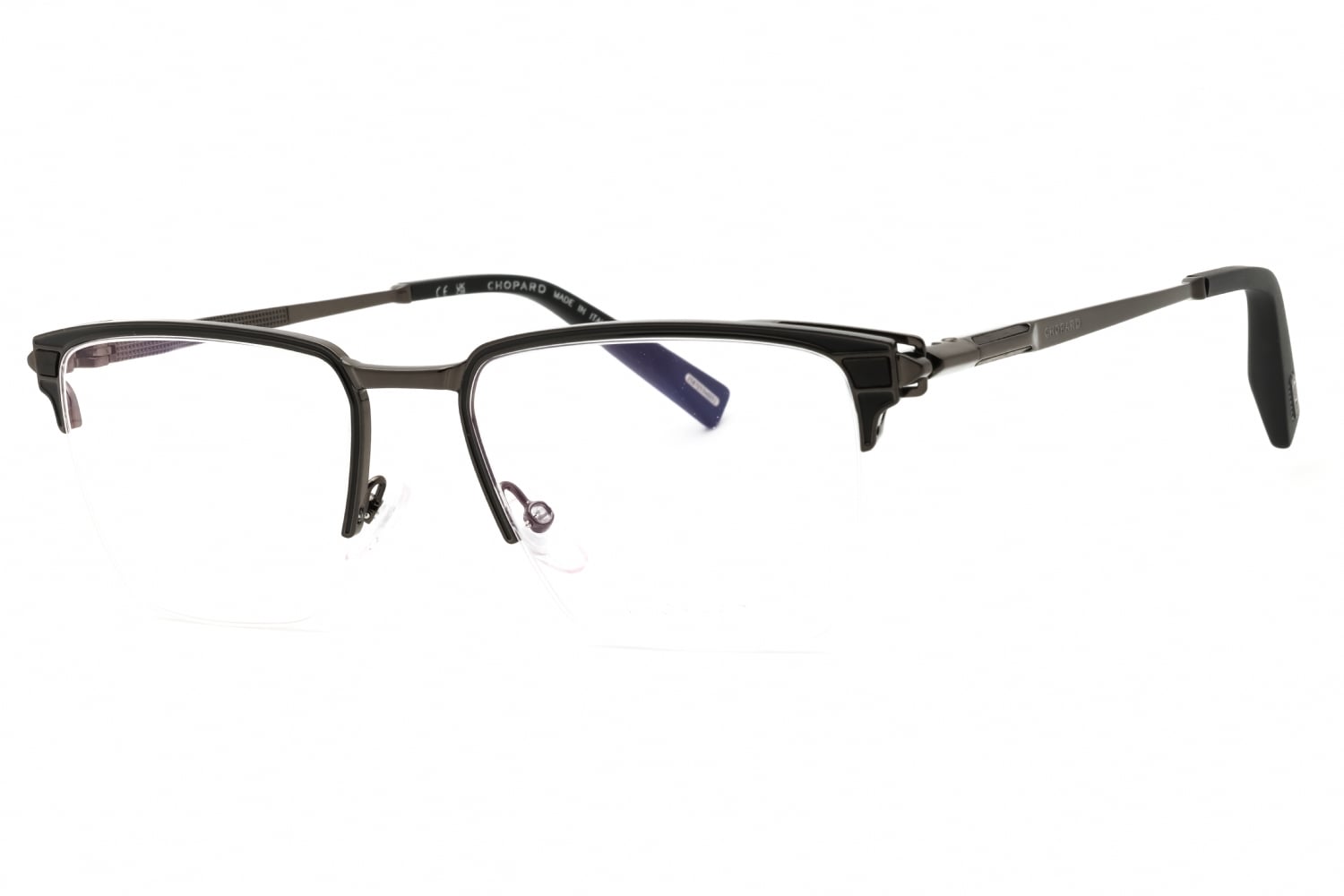 Chopard VCHL20V in Shiny Gunmetal. This model features an eye catching shape to complement your facial features.The frame is made from quality materials, balancing weight and strength for your ultimate comfort.