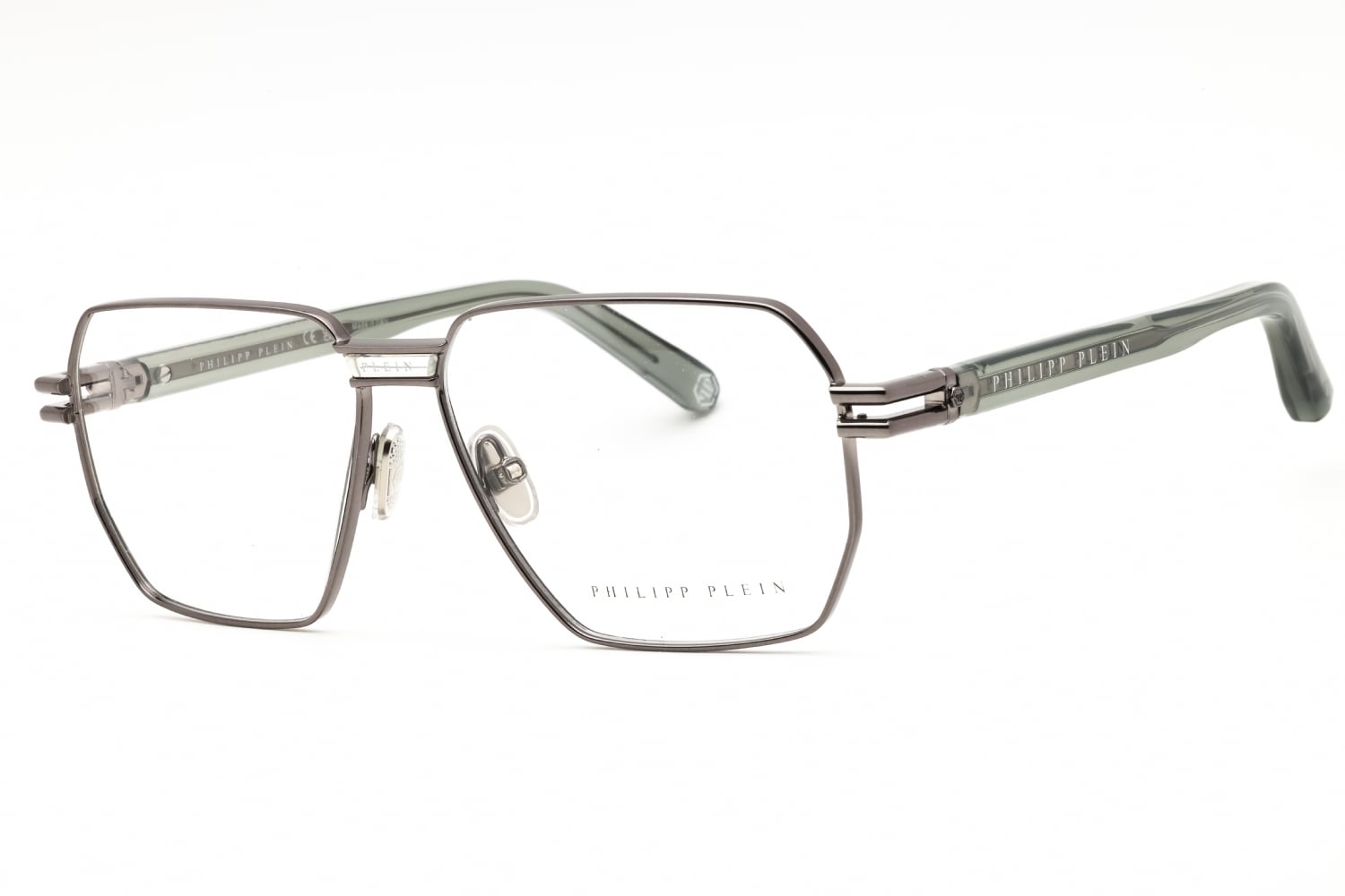 Philipp Plein VPP114M in Shiny Gunmetal. This model features an eye catching shape to complement your facial features.The frame is made from quality materials, balancing weight and strength for your ultimate comfort.